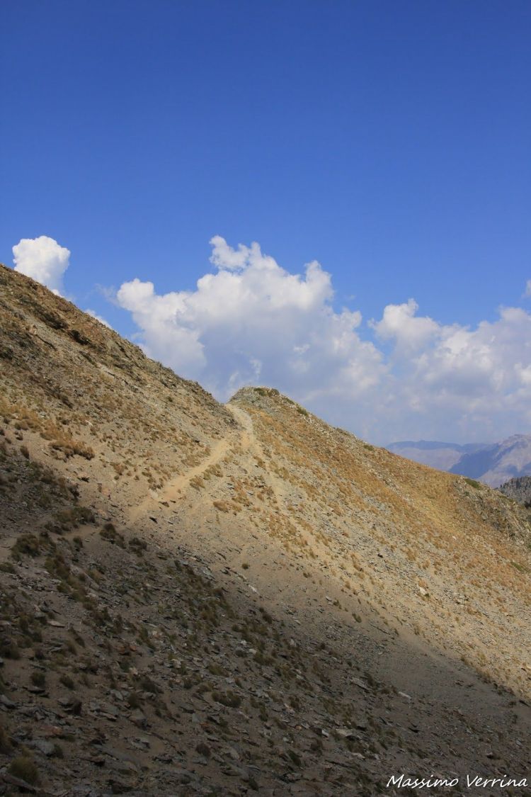 Il mio lungo cammino proseguiva per un tratto in falso piano, con le nubi che giocavano a nascondino col sole, preannunciando i primi cambiamenti del pomeriggio….