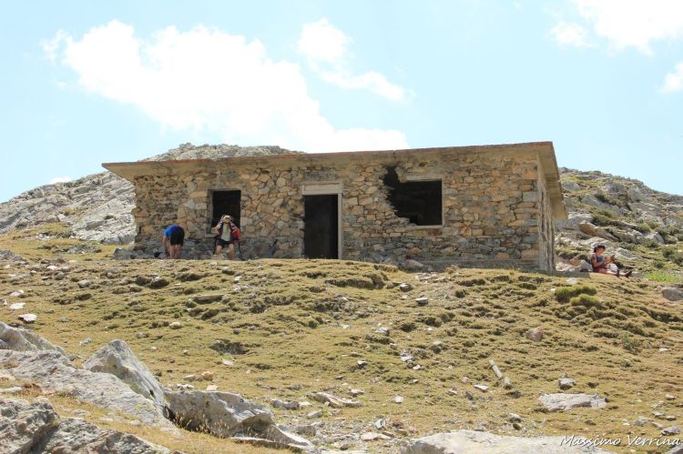Per farvi capire dove stiamo salendo, uso un’altra delle mie immagini scattata durante la discesa sul lato opposto. Ora mi trovavo su quel sentiero che sale a zig zag sul crinale di fronte, stiamo per raggiungere un’altra fortificazione che vediamo in alto sul crinale…