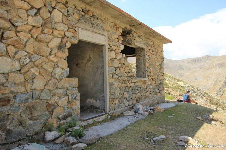 Con l’immagine di copertina di oggi e quella che segue, vi faccio vedere come appare quella piccola fortificazione nascosta fra i monti. Qui siamo sullo stretto collegamento esterno che circonda il forte. Sotto di noi si apre lo strapiombo che finisce nell’ampia vallata. Vista da questa prospettiva si capisce molto bene come fosse ideale quella postazione, qui chiunque saliva dalla valle poteva essere intercettato e fermato. Solo chi fosse sceso dal monte avrebbe potuto sorprenderli..