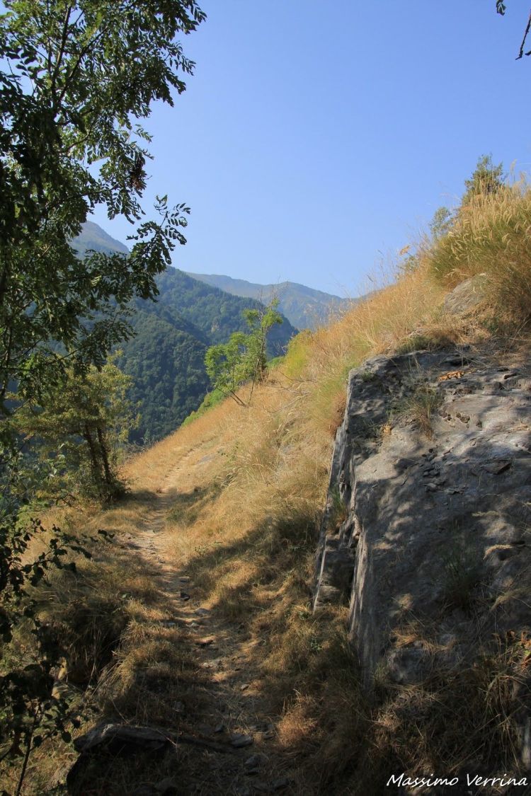 Dopo un breve tratto di asfalto il sentiero si fa subito escursionistico, e comincia a salire in maniera abbastanza evidente. Qui il caldo si faceva davvero sentire, nonostante la modesta quota alla quale mi trovavo….