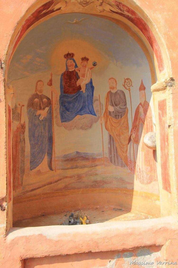 Dopo un’intensa salita sotto il sole ecco la prima sorpresa, un’edicola votiva che spicca contro il cielo azzurro in una curva del sentiero…