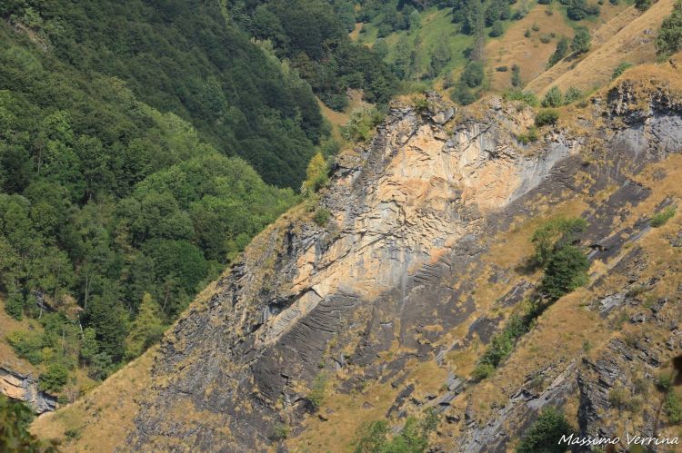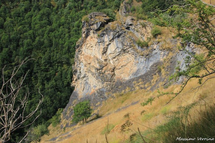 Da questo punto del sentiero possiamo ammirare al meglio la verticale parete rocciosa sotto di noi che scende nel canyon a valle. Qui la prospettiva ci aiuta a comprendere bene la verticalità di queste pareti e in generale di questo lato della vallata..