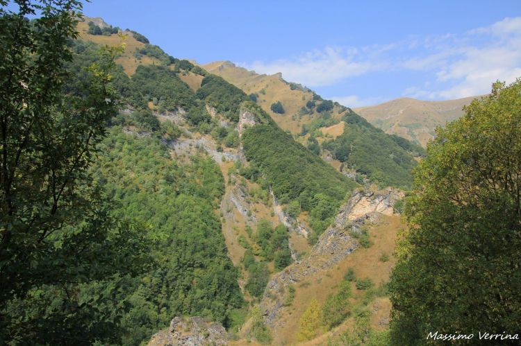 Superata l’edicola votiva il paesaggio si fa ampio e ci permette di vedere al meglio l’ampia vallata che stiamo percorrendo..