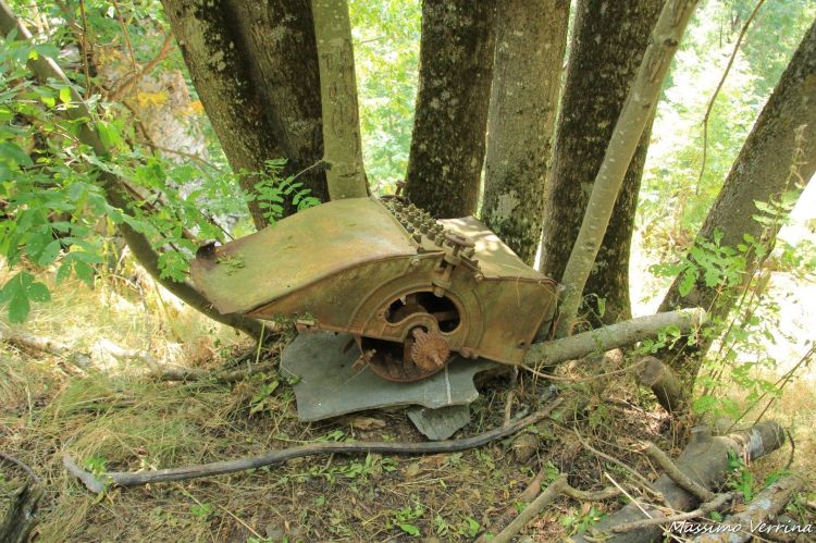Ci allontaniamo da questa prima parte del borgo e lungo il sentiero incontriamo un vecchio attrezzo da lavoro, praticamente un reperto da museo a cielo aperto rimasto qui dall’epoca in cui è stato abbandonato il borgo…
