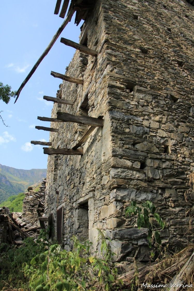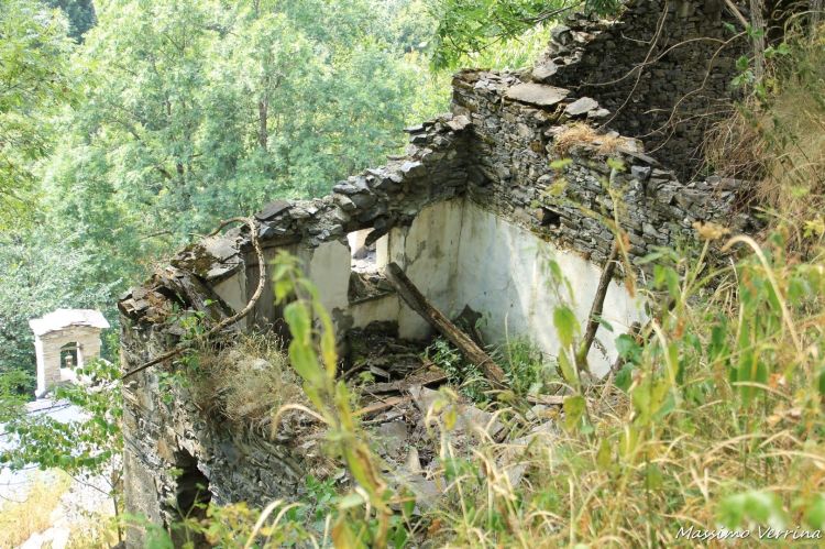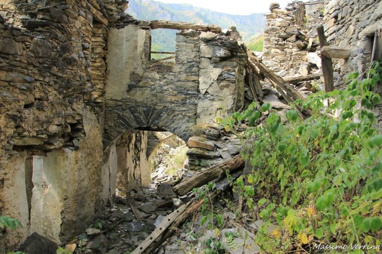 Passiamo davanti ad altri ruderi, alcuni di essi hanno delle facciate parzialmente intatte, altri sono completamente distrutti. Sicuramente anche il maltempo e le valanghe invernali hanno contribuito al degrado di questo borgo…
