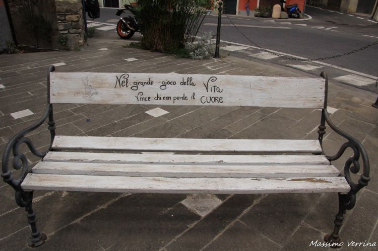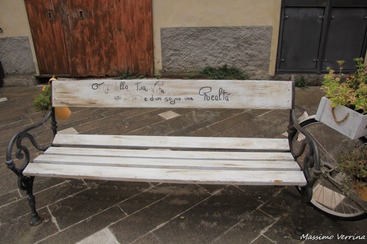 Ma eccoci arrivati nella sorpresa di cui vi parlavo ieri, una piccola piazzetta dove le panchine ci trasmettono messaggi di positività davvero belli, da leggere ad ogni risveglio…