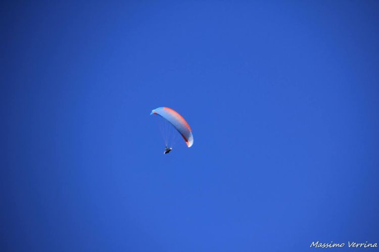 Sopra di noi, in un cielo cobalto, ecco un parapendio librarsi nella brezza del mattino…