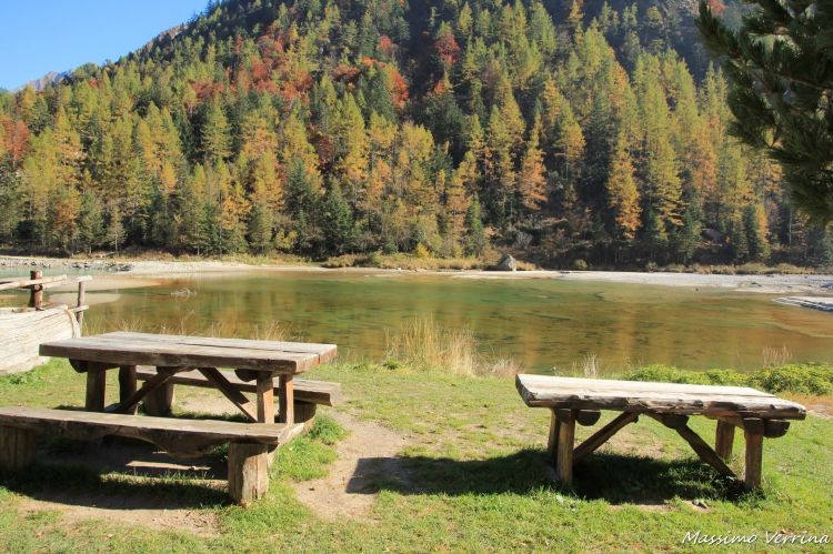 Per chi vuole mangiare al sacco qui ci sono anche due panche affacciate sul laghetto….