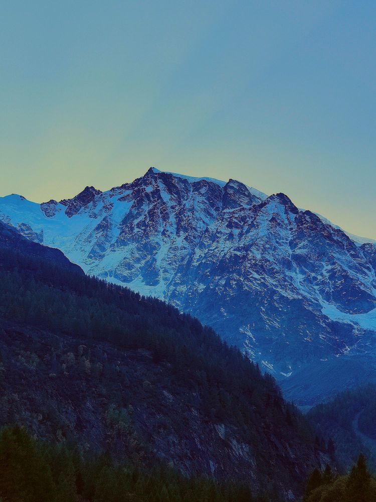 E per finire ecco l’ultima luce del sole che scompare dietro il Monte Rosa, con le ombre della sera che si allungano sul paesaggio, tra le fredde atmosfere di un inverno che quassù è già realtà.