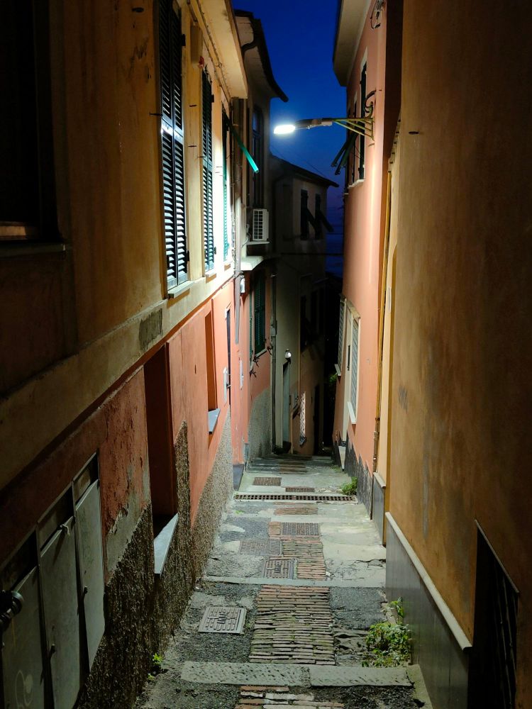 Con l’immagine di copertina di oggi avete visto l’ultimo scatto del giorno nel centro storico di Nervi, da ora in avanti saranno le immagini dell’ora blu e della notte a colorare i vostri sguardi. La passeggiata è deserta, ecco la meraviglia dell’ora blu mentre cammino verso Capolungo….
