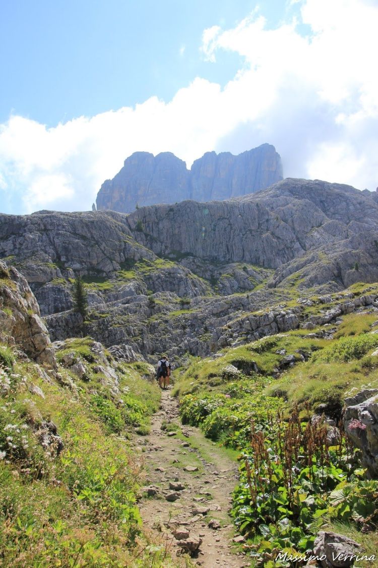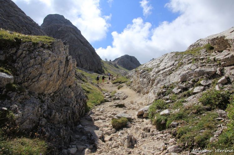 Le Dolomiti in estate sono molto frequentate, per cui, a differenza dei cammini che faccio spesso, dove non incontro quasi nessuno, qui di gente ce n’era fin troppa, in alcuni momenti si procedeva in fila indiana, ma l’ambiente merita, per cui poco male come si suol dire…