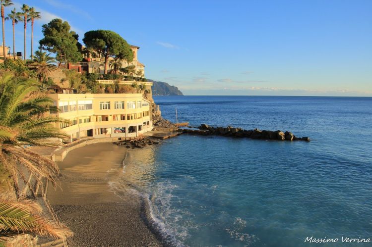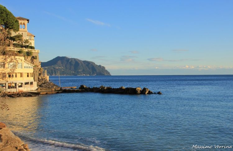La bellezza di Bogliasco la si vede al meglio se la si osserva dal mare, ecco le luci che baciano le case, e le ombre lunghe dei tramonti d’inverno che scrivono poesie sulle colline colorate dal sole…