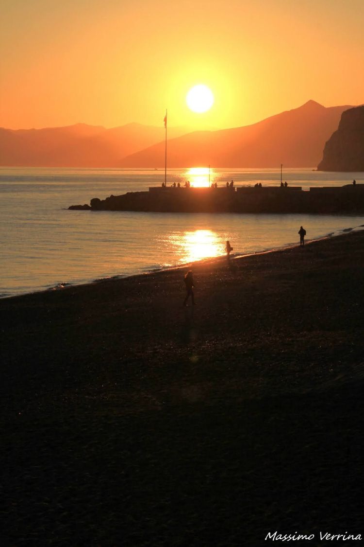 Ci stiamo spostando nella parte più orientale di Finale, da dove osserveremo lo spettacolo del tramonto. Qui nella Riviera di Ponente il tramonto avviene prima, in quanto il sole scende dietro i monti, per cui l’ombra comincia da ovest e corre velocemente verso levante…