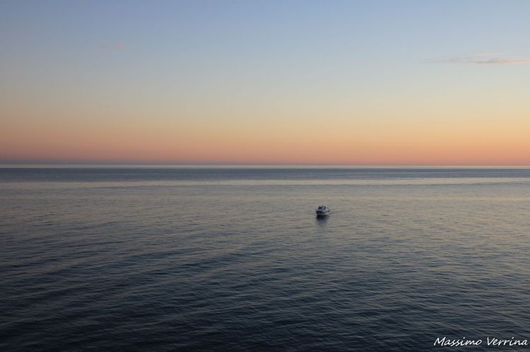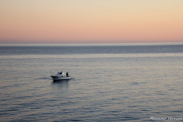 Dopo il tramonto la natura sempre volersi riposare, il relax assume sempre più importanza in vista della vicina notte. Osservo il mare, una barca è immobile nella bonaccia della sera, mentre una luce rosata colora l’orizzonte…