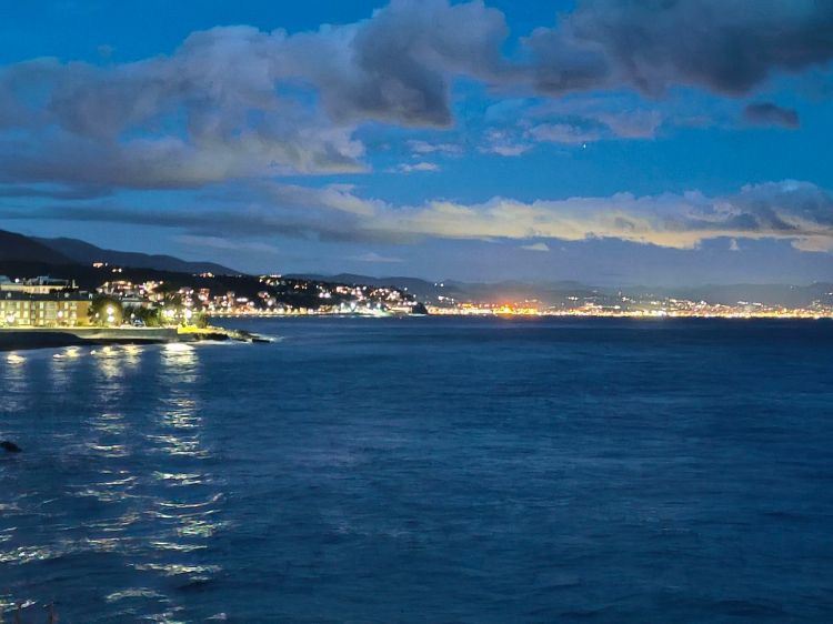 Anche la notte sa essere spettacolare da queste parti, quando le stelle bussano alle porte del cielo facendosi strada fra le nubi, mentre le luci della città scrivono poesia sulla tela del mare…