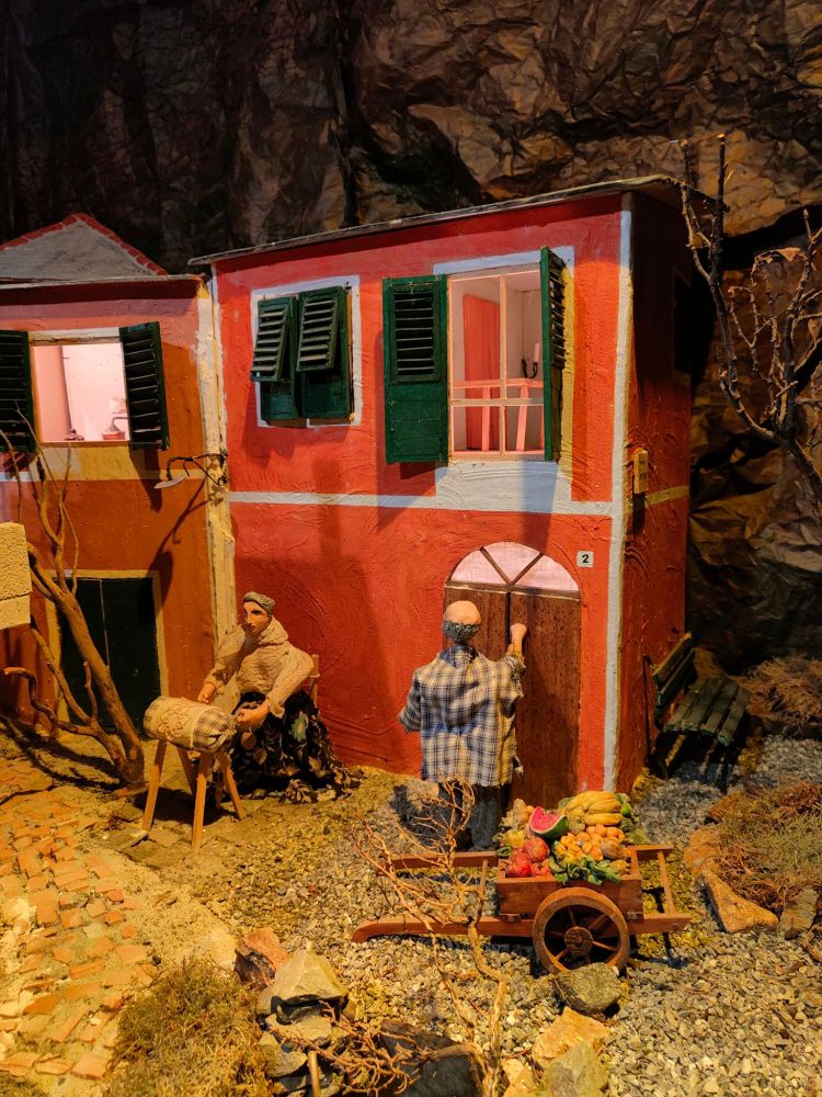 E per finire questo angolo fantastico, con le luci gialle tipiche dei borghi antichi, un uomo che bussa ad una porta, una donna intenta a fare il tombolo, degli interni curatissimi e delle persiane che sembrano davvero reali. Lo spettacolo è servito…