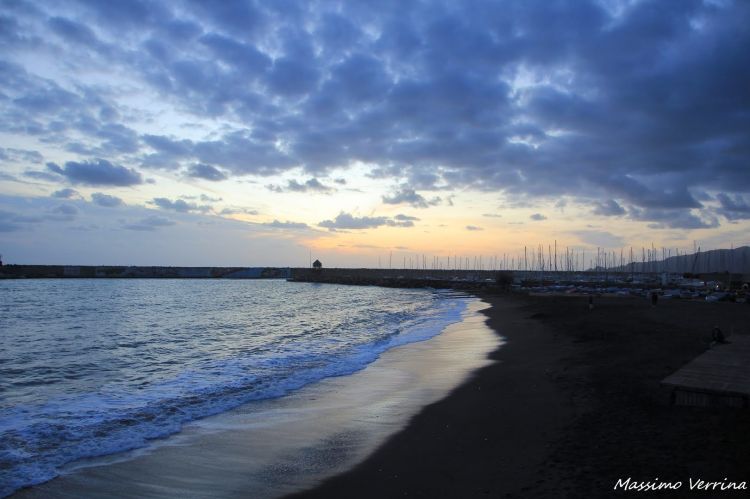 Ecco l’arenile farsi nero come la cenere, mentre il mare riflette le ultime luci del giorno in un bagliore di pura poesia…