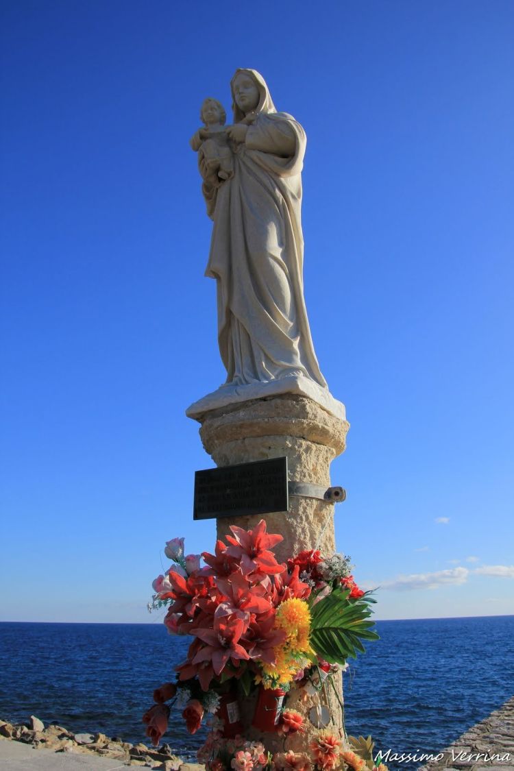 All’imbocco del porticciolo, alla fine della diga, ecco una bella statua della Madonna col bambino, che sembra voler proteggere tutti coloro che arrivano dal mare …
