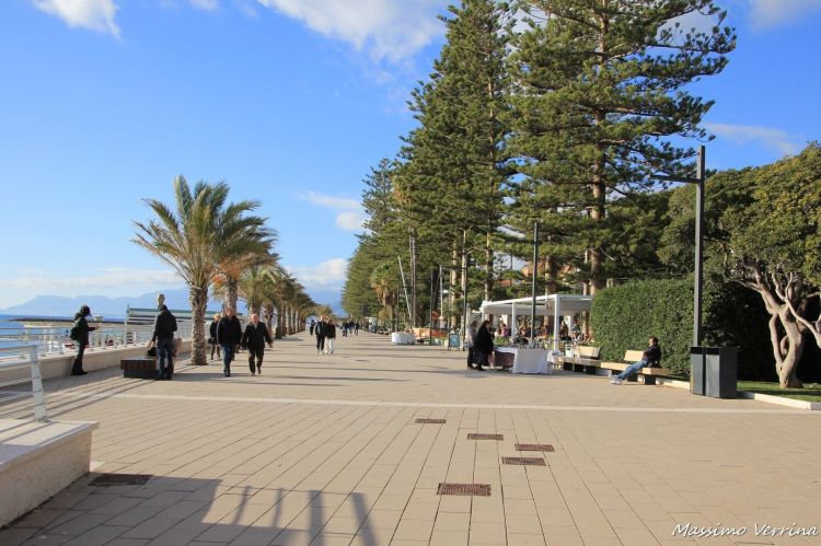Guardate che meraviglioso colpo d’occhio che si ha dall’arenile osservando gli alberi della passeggiata e i vari locali affacciati sul mare…