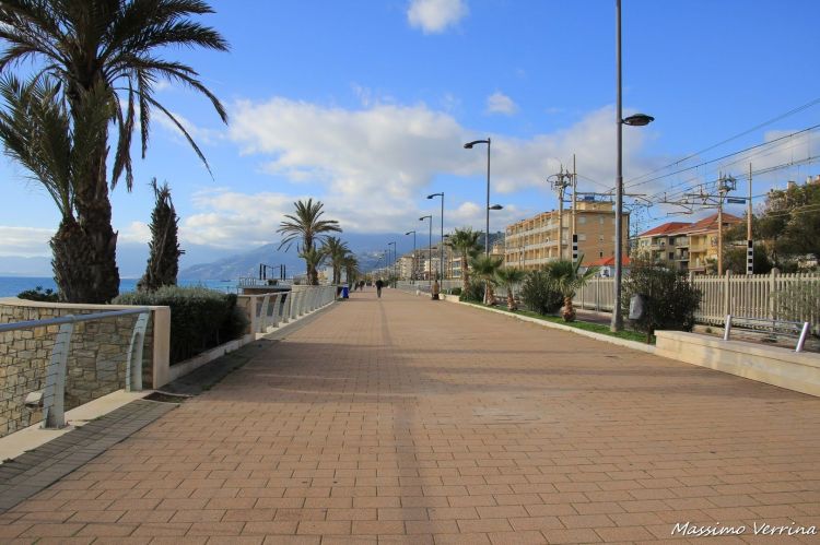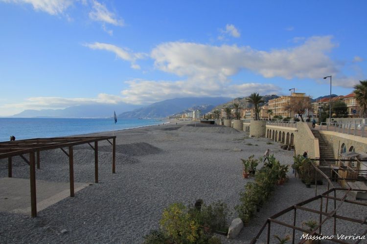 In quella bellissima giornata di fine dicembre, quando ho scattato queste immagini, la voglia di camminare non conosceva freni, così, lasciato alle spalle il meraviglioso borgo di Bordighera mi stavo dirigendo velocemente verso ponente. Qui le spiagge sono ancora più vaste, la passeggiata cambia forma , ci sono meno alberi, ma la bellezza dei panorami aggiunge bellezza a tutto il percorso…
