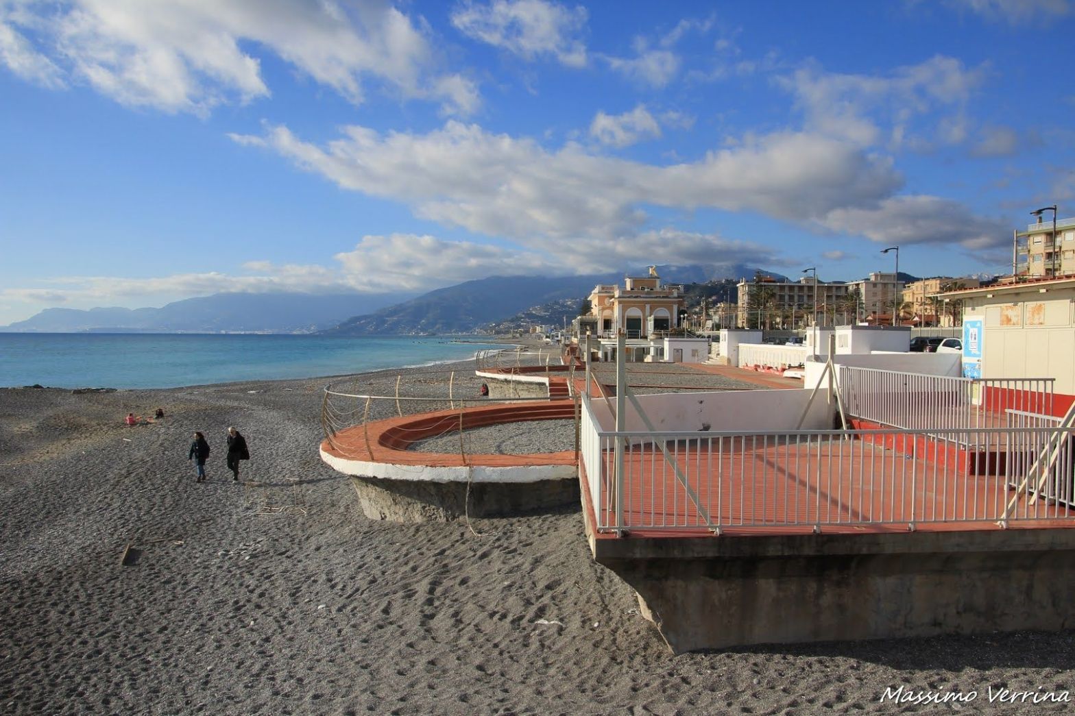 In quella bellissima giornata di fine dicembre, quando ho scattato queste immagini, la voglia di camminare non conosceva freni, così, lasciato alle spalle il meraviglioso borgo di Bordighera mi stavo dirigendo velocemente verso ponente. Qui le spiagge sono ancora più vaste, la passeggiata cambia forma , ci sono meno alberi, ma la bellezza dei panorami aggiunge bellezza a tutto il percorso…