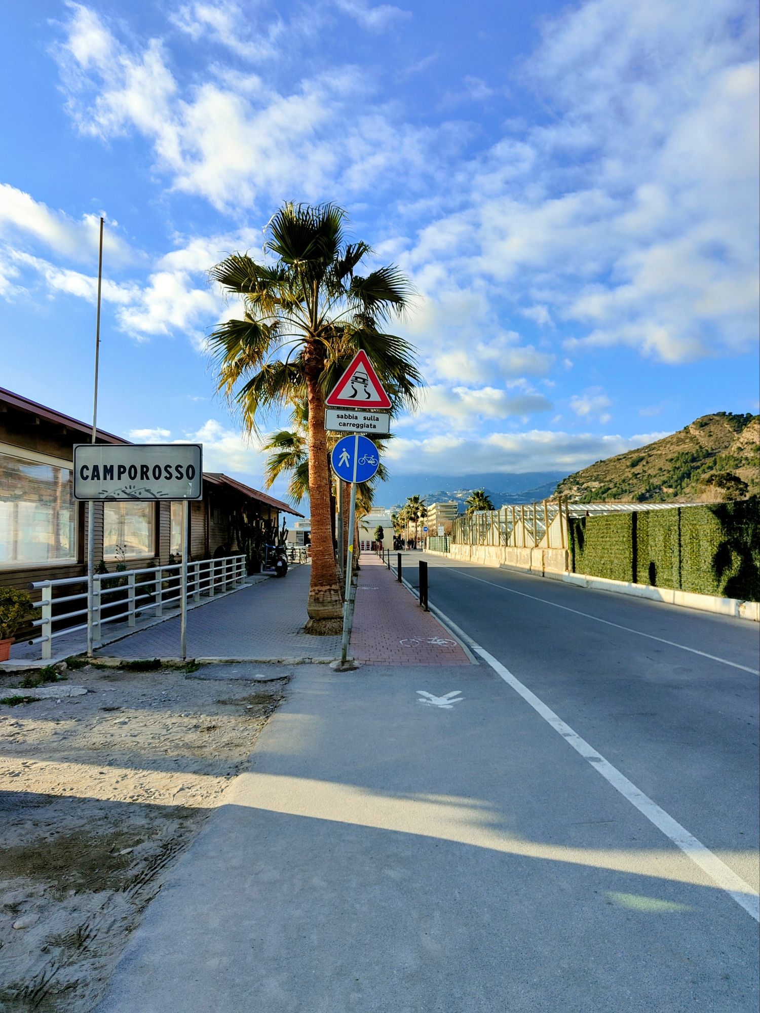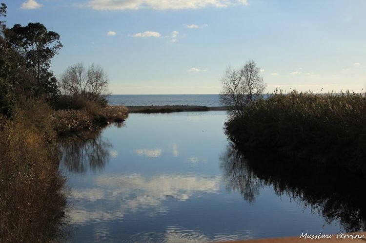 Per raggiungere Ventimiglia la strada ciclopedonale fa un giro verso l’interno per sorpassare il fiume che divide Ventimiglia da Camporosso. Qui possiamo notare un bellissimo riflesso della sua foce in un momento di grande quiete….