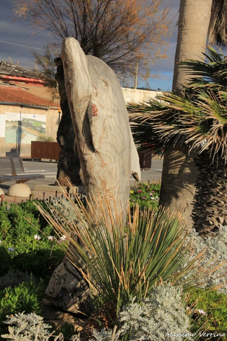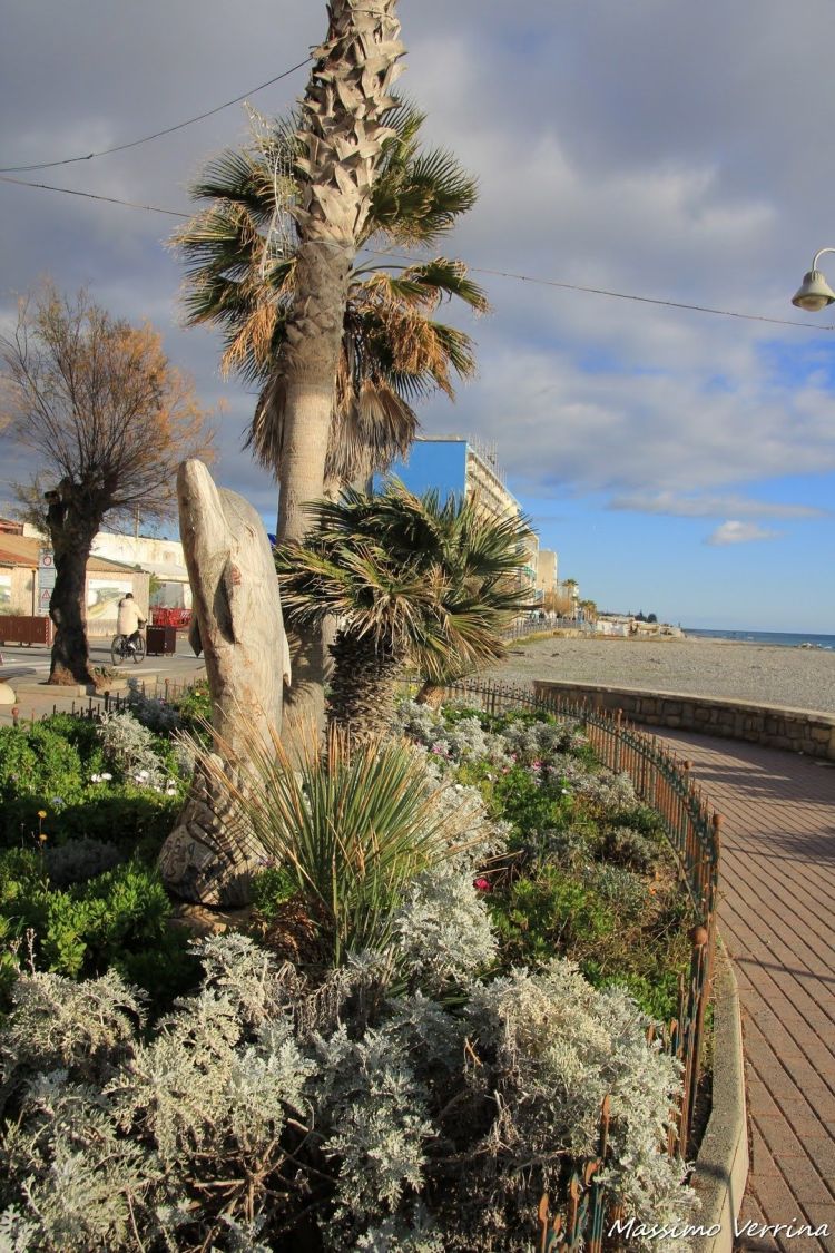 Eccoci arrivati a Camporosso, altro borgo che ci separa da Ventimiglia. Qui fra le molte cose ho trovato interessante notare questa aiuola con tanto di delfino scolpito, un lavoro artistico molto carino…