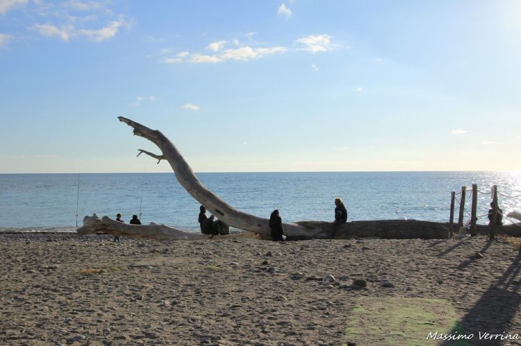 Poco prima di Ventimiglia questo grosso albero trasportato dal mare funge da panchina per i turisti. Spesso le mareggiate trasportano anche frammenti di alberi giunti in mare attraverso le piene dei torrenti. Quando il mare si ritira questi enormi legni restano sulla spiaggia fino a quando non vengono rimossi, solitamente prima dell’inizio della stagione estiva…