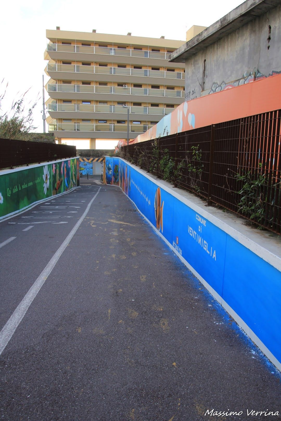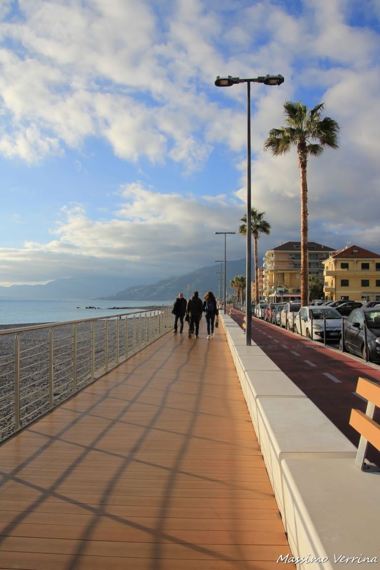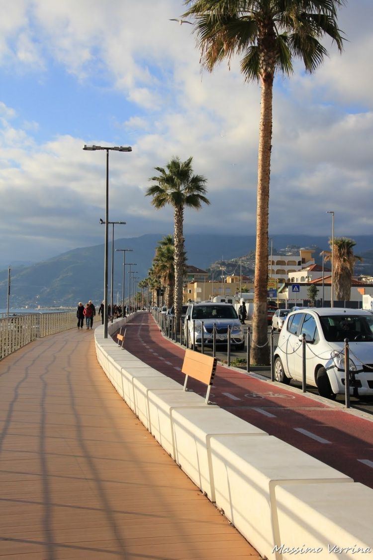 Ed eccoci arrivati sulla passeggiata a mare di Ventimiglia, la cosa che salta subito all’occhio è quel muretto nel mezzo che separa la corsia ciclabile da quella pedonale…