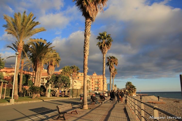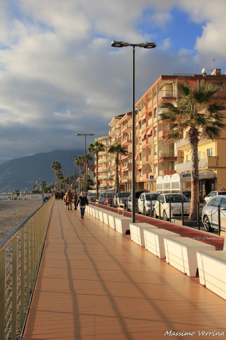 Ecco le luci che cominciano a farsi dorate, le stesse scenografie cominciano a mutare, sto rientrando verso Bordighera, dando ancora un’ultima occhiata alla bellissima passeggiata di Ventimiglia che mi appresto a lasciare….