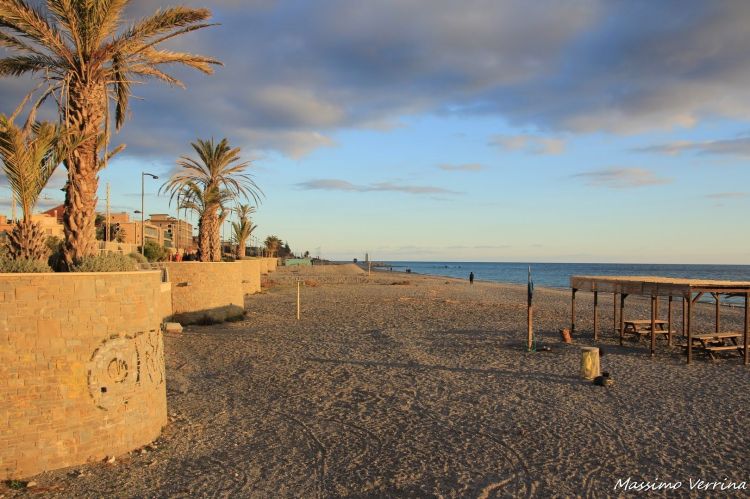 Anche le spiagge vuote, osservate dall’esterno della passeggiata, come se foste dei gabbiani che le sorvolano, creano una scenografia che le luci del tramonto amplificano…