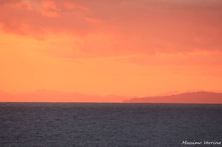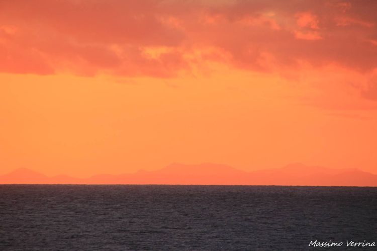 In lontananza la costa francese ci appare avvolta dalle fiamme in questa visione molto particolare con la quale ho voluto cogliere il colore del tramonto nella sua fase più accesa in assoluto…