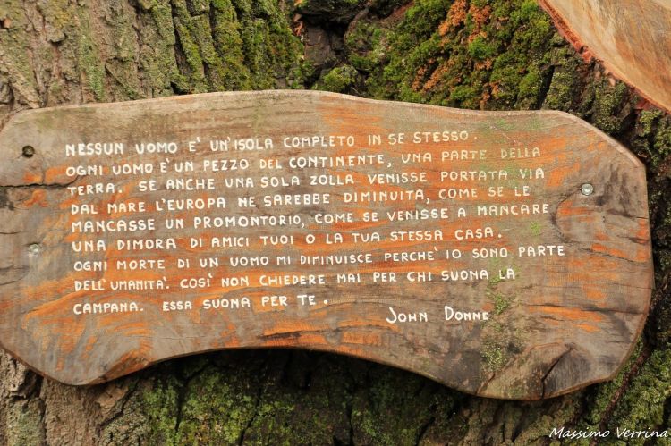 Durante il cammino s’incontrano anche dei legni artistici, dove vengono riportate citazioni che fanno riflettere, questa l’ho trovata bellissima e ve la faccio leggere direttamente a voi…