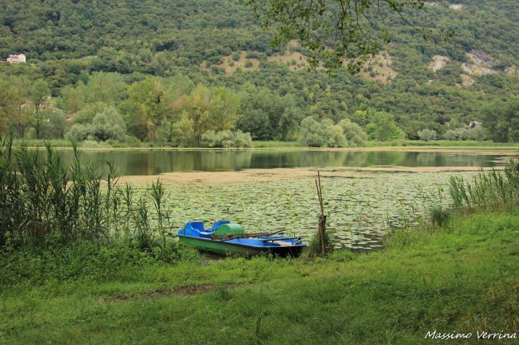 Torniamo verso la fine del lago, con quel tappeto erboso in superficie. Qui possiamo osservare anche un piccolo pontile per le barche….