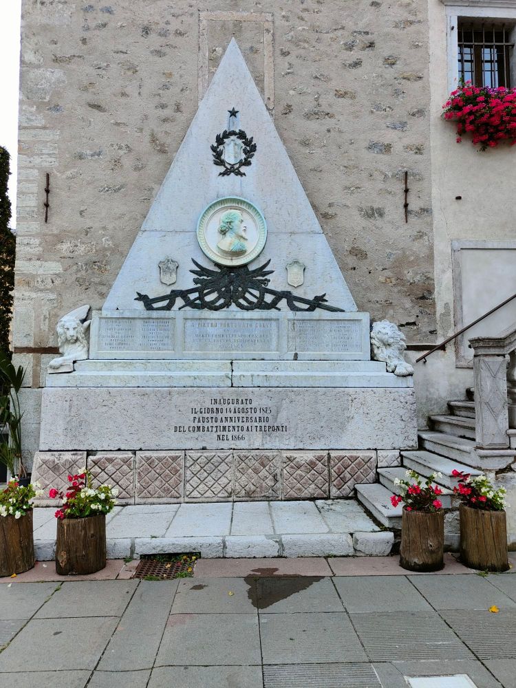 Usciamo nuovamente all’esterno per completare la visita del borgo. Ecco un monumento dedicato al combattimento ai Treponti del 1866…