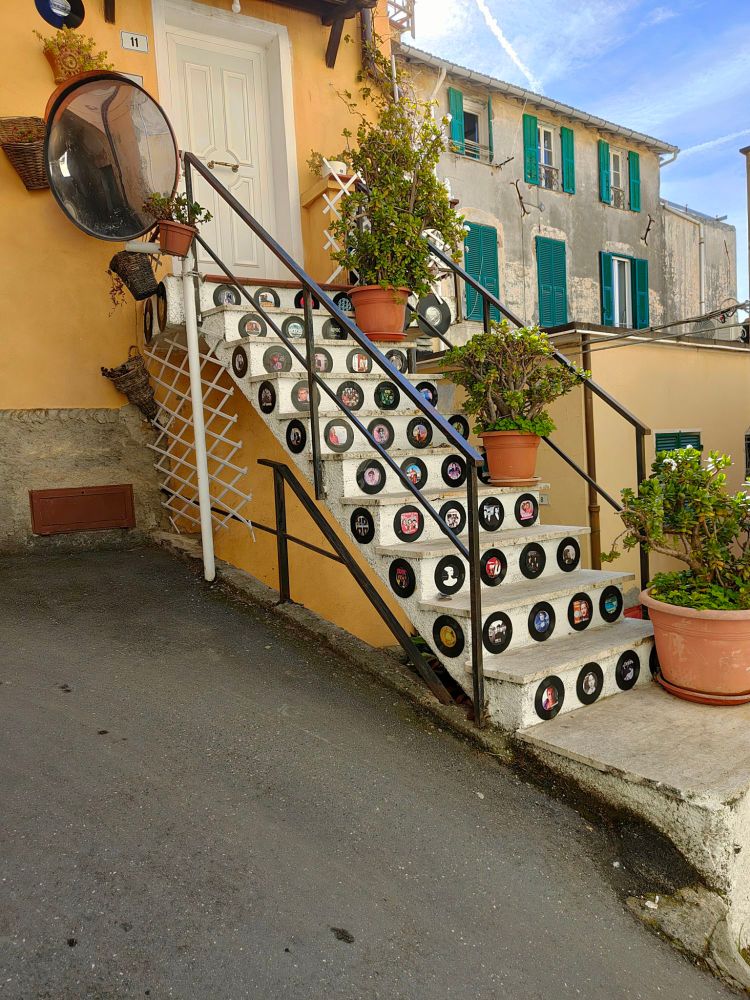 Ecco una bellissima sorpresa, davanti ad una casa c’è una scalinata con tanti dischi in vinile, con all’interno i grandi cantanti che hanno segnato la storia della musica italiana, qui l’amore per la musica lo si respira ovunque…