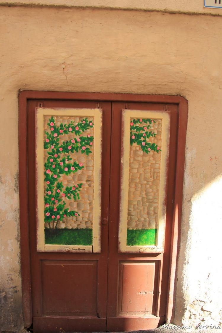 Alcune porte sono dipinte, sebbene questo non sia il borgo delle porte dipinte. I loro colori danno luce alla scenografia trasportandoci in questo caso in primavera….