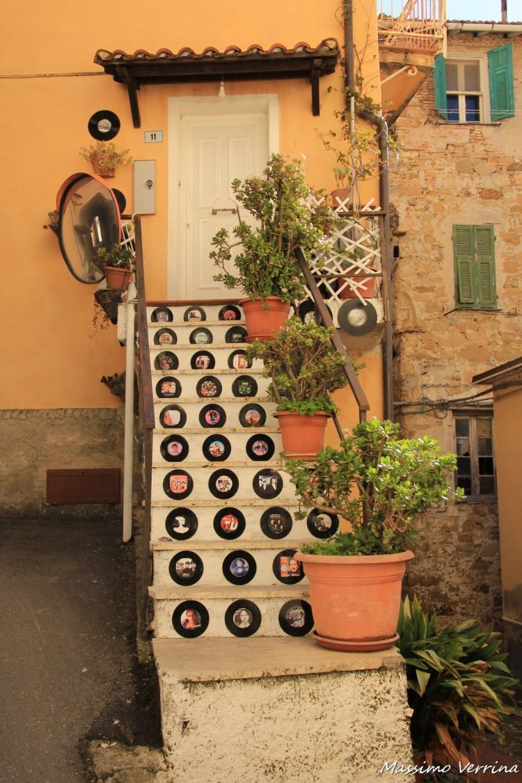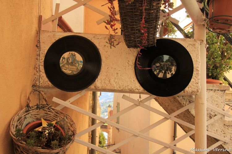 Ed ecco una bellissima sorpresa, qui la musica sembra essere protagonista assoluta, una scala è stata tutta addobbata con dischi in vinile, dentro i quali ci sono le immagini dei grandi cantanti e gruppi di sempre….