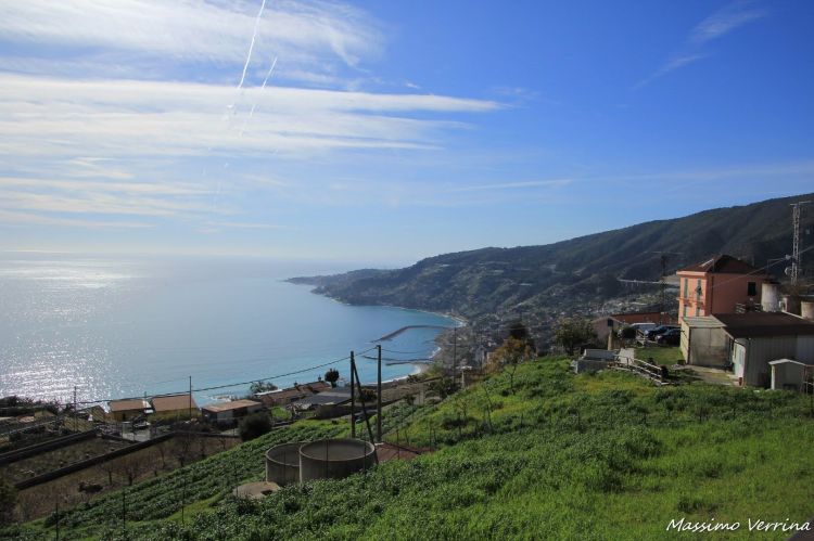 Da qui il panorama è magnifico, laggiù possiamo ammirare Ospedaletti, il punto dal quale sono partito in quella mattinata e dove vi porterò domani attraverso la nuova narrazione, dopo aver sceso nuovamente il sentiero a piedi….