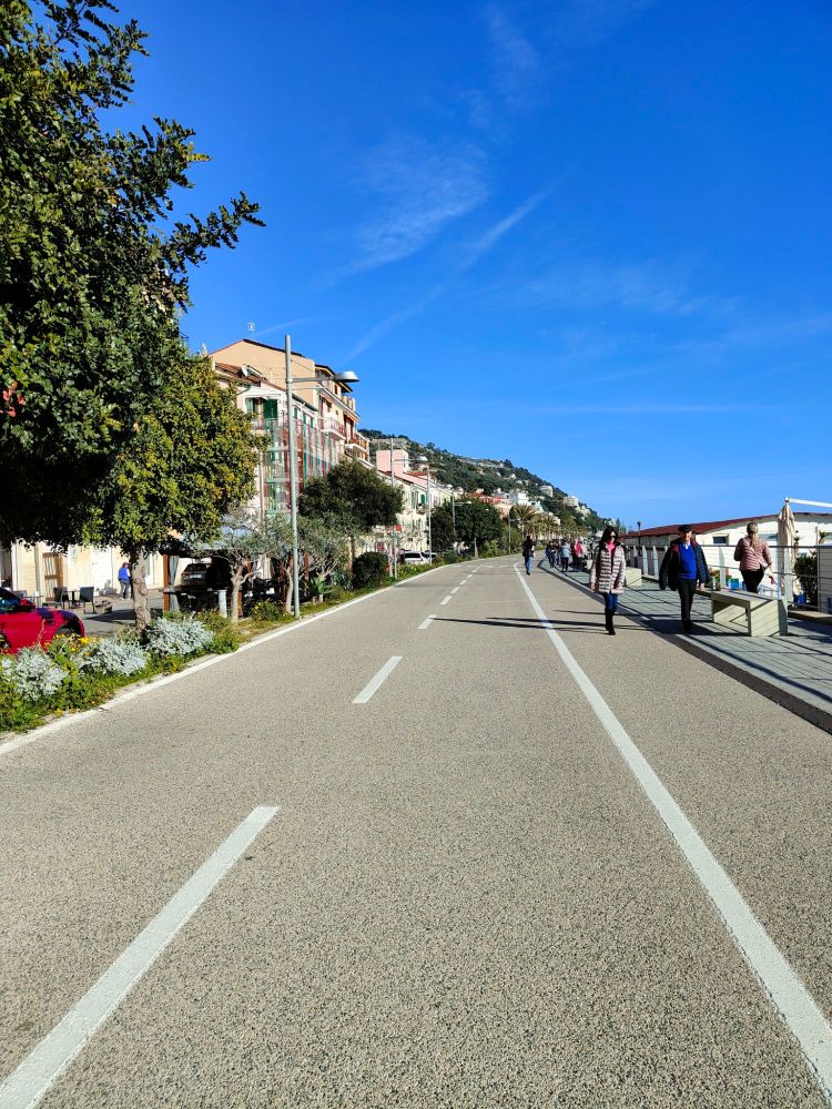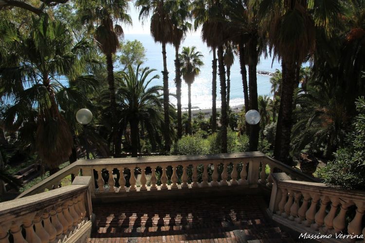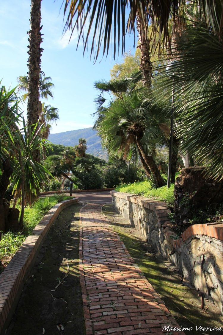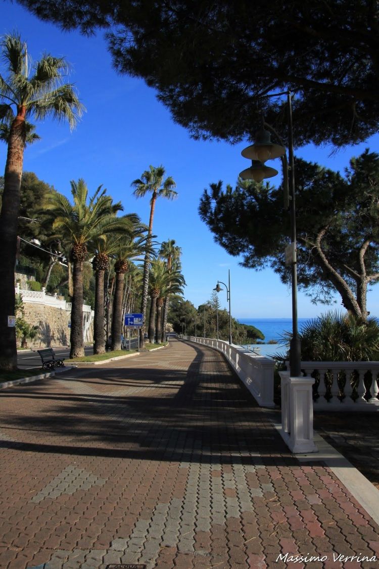 Proseguiamo a camminare lungo questa bellissima passeggiata, in realtà qui a Ospedaletti le passeggiate sono due, c’è quella che costeggia l’Aurelia, che stiamo vedendo ora, verdissima e meravigliosa, e quella che costeggia il mare, soleggiata e ampia dove passa anche la pista ciclabile che vedremo dopo…