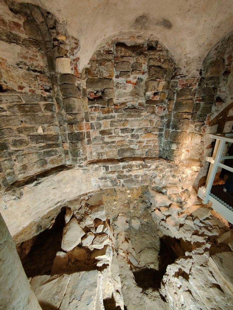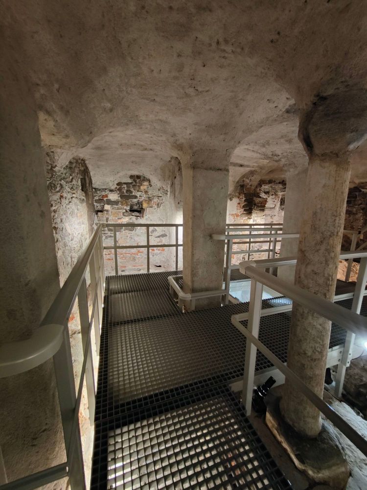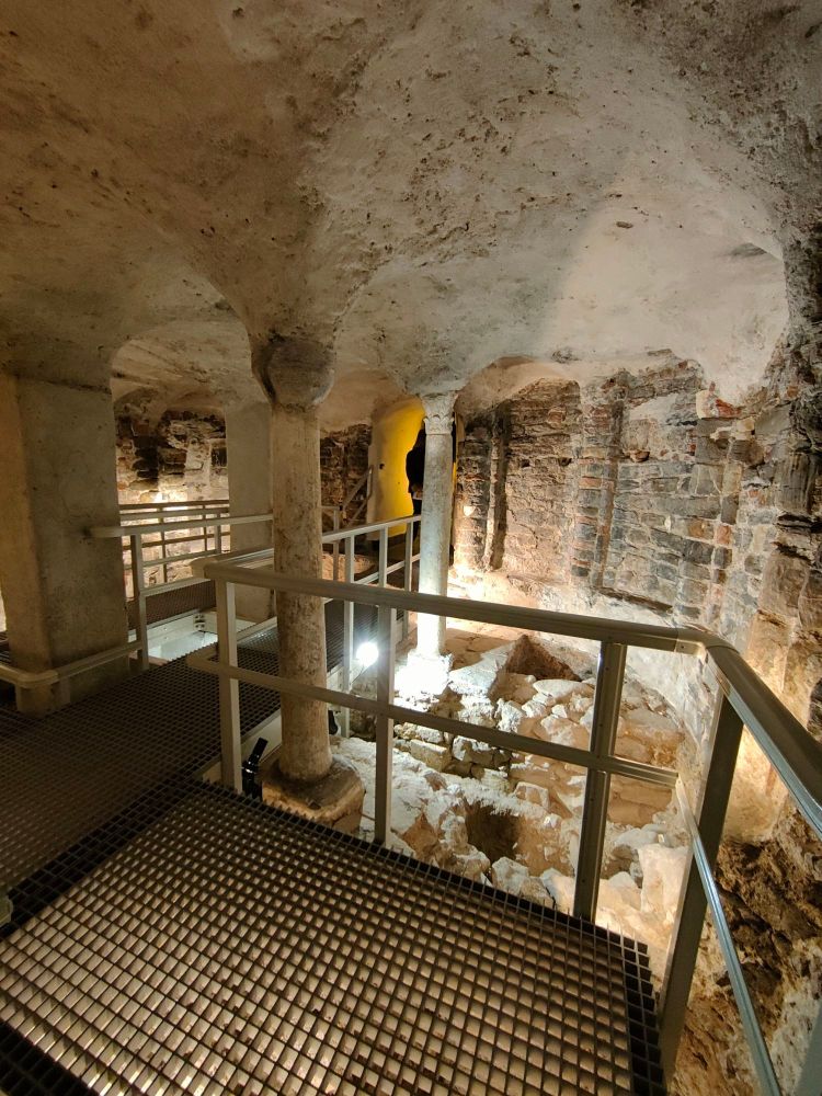 Attraverso delle passerelle i visitatori possono scoprire questa parte storica, antichissima. La giusta illuminazione permette poi di far vedere al meglio ogni singolo reperto storico…