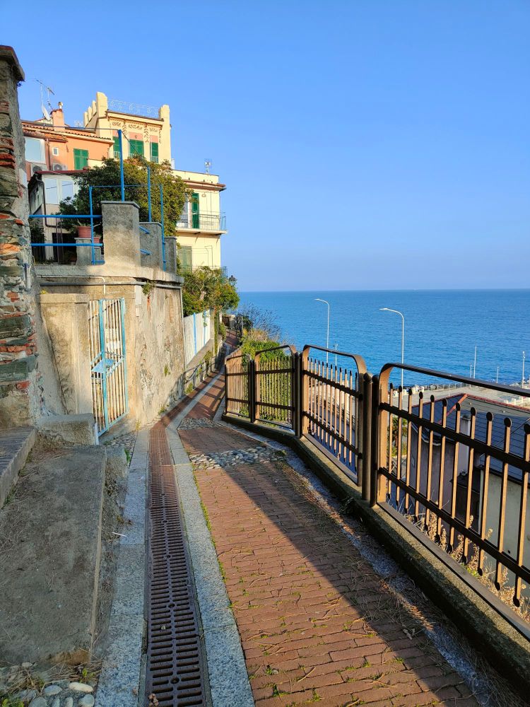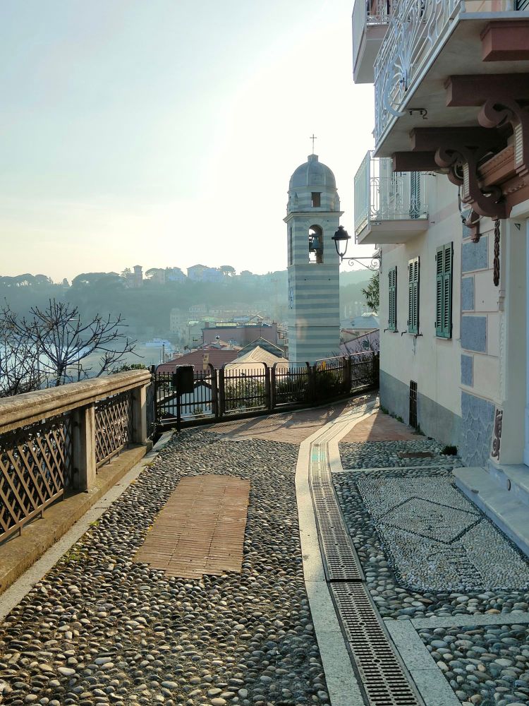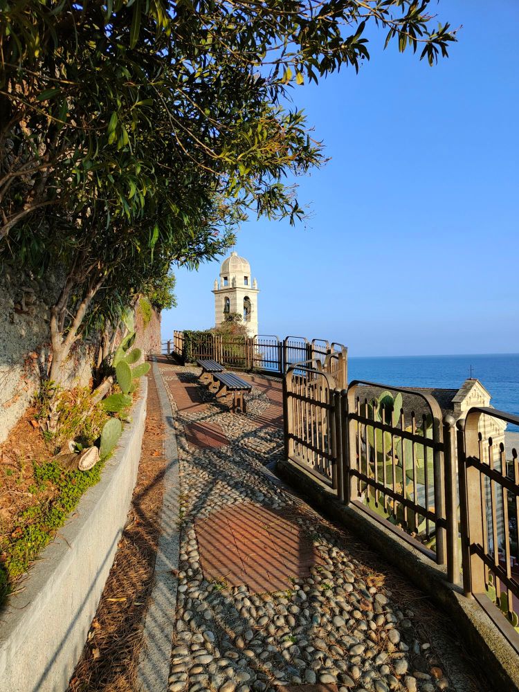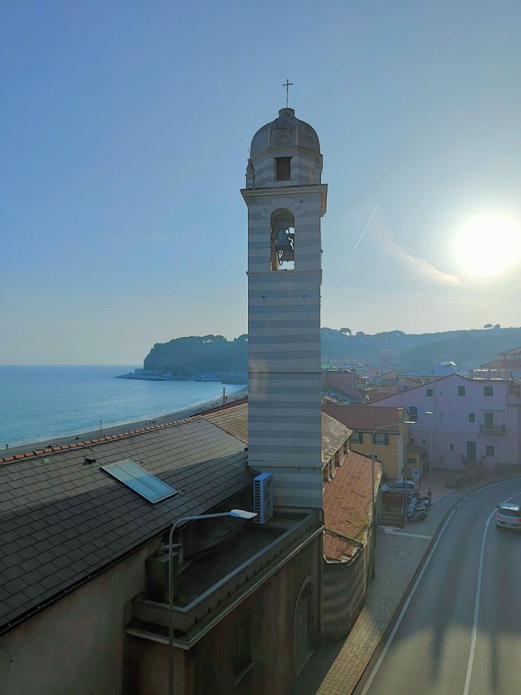 Il campanile della Chiesa di Nostra Signora della Consolazione fa da sfondo a gran parte di questo breve cammino storico, i suoi inconfondibili colori raccontano la Liguria…