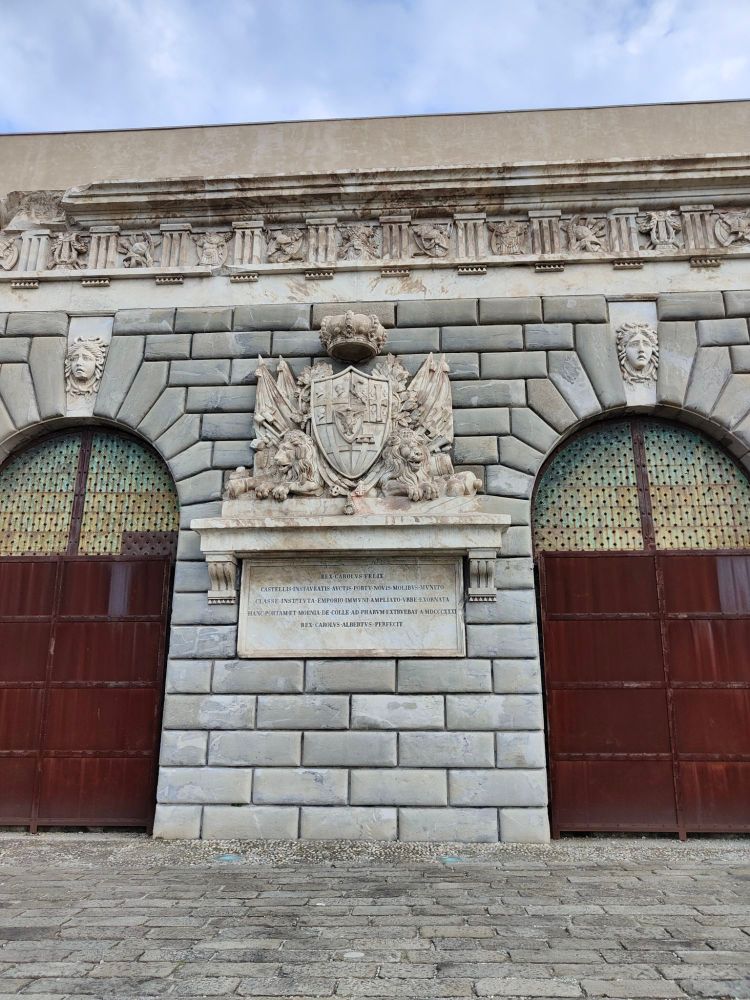 Ecco il bellissimo stemma storico sulla sua facciata principale, la vecchia entrata che come detto verrà ripresa in futuro. Sotto di noi stanno nel frattempo costruendo un tunnel che una volta terminato consentirà di raggiungere il levante cittadino passando sotto il mare. Così facendo anche la sopraelevata non servirà più, insomma il paesaggio urbano così come lo conosciamo oggi, nei prossimi decenni non sarà più lo stesso…