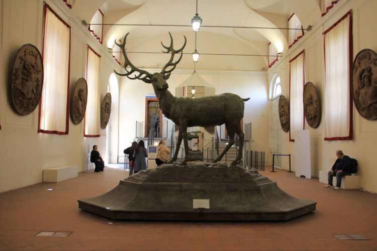 Ancora Auguri di Buona Pasqua a tutti, spero l’abbiate trascorsa nel migliore dei modi. Proseguiamo la visita di questo immenso Palazzo, la foto di copertina di oggi riassume la bellezza del salone principale che abbiamo visto col post di ieri. Facciamo ora un passo a ritroso, vi faccio osservare il grande cervo che trovate appena entrati nel Museo, questo è l’originale, quello posto sul tetto che abbiamo visto ad inizio narrazione è una copia…