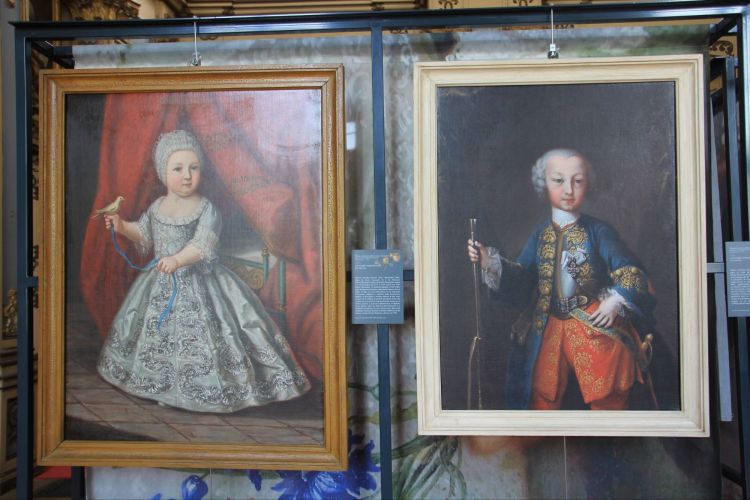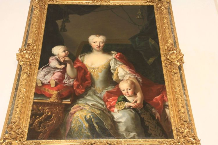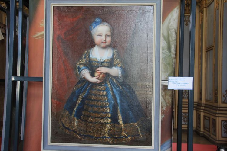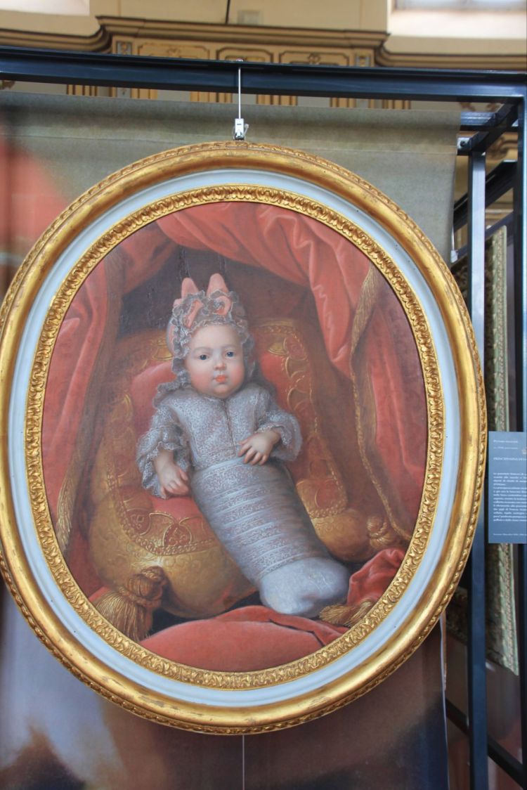 Prima di uscire dal Palazzo per vedere il suo vastissimo Parco, osserviamo ancore una serie di dipinti che ci fanno vedere i nascituri delle case reali, noterete delle cose particolari, insolite per come siamo abituati oggi…
