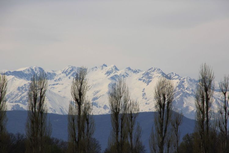 Da qui il vero spettacolo si ha usando il teleobiettivo, in questo modo le Alpi innevate creano uno sfondo magnifico, che contrasta con la nascente primavera della pianura…