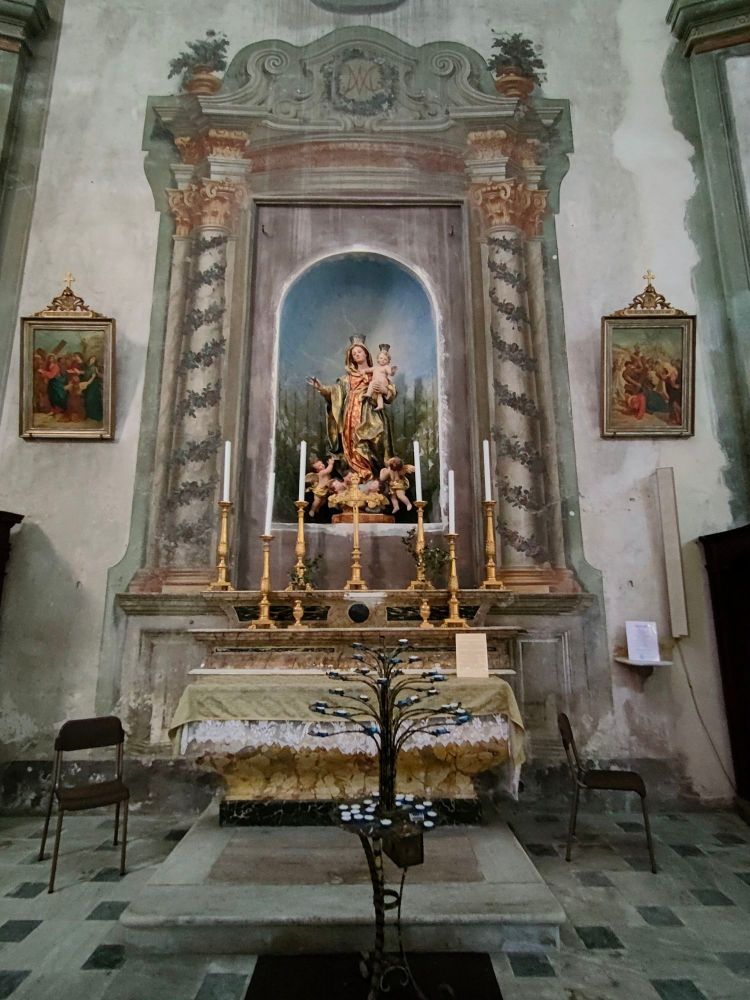 Pur non essendo molto grande conserva al suo interno delle statue molto belle e dei dipinti assai interessanti, iniziamo a vedere le sue navate laterali, con questa Madonna con bambini che sembra volerci abbracciare quando passiamo davanti ad essa…