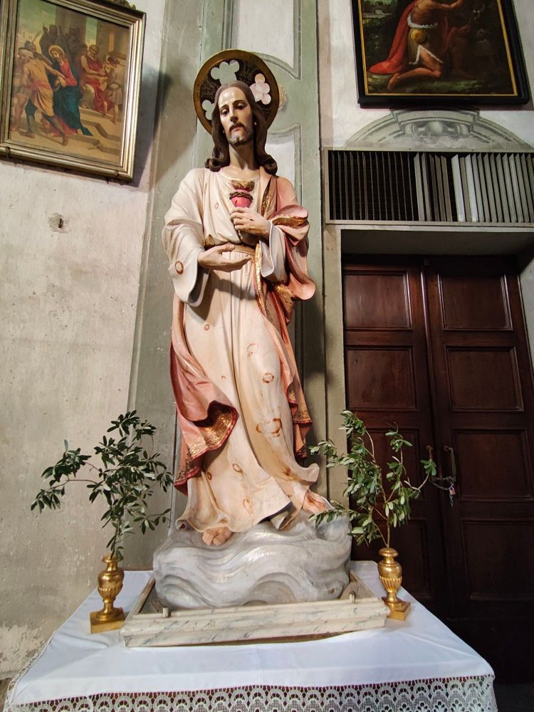 Quando ho visitato questa Chiesa era la vigilia della domenica delle Palme, ecco spiegati gli ulivi ai piedi della prossima statua, di una bellezza toccante per l’emotività che sa trasmettere…