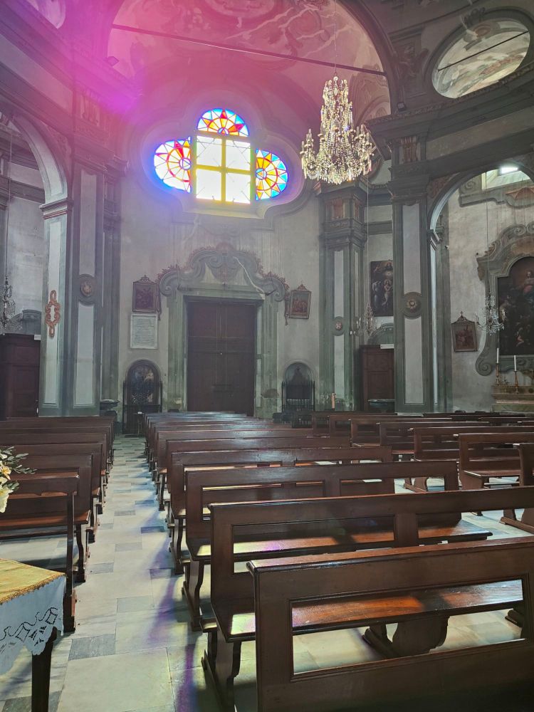 La stessa luce del sole attraversando i vetri colorati creava riflessi di luce verso l’altare molto particolari, ecco una bella visione d’insieme del tutto..