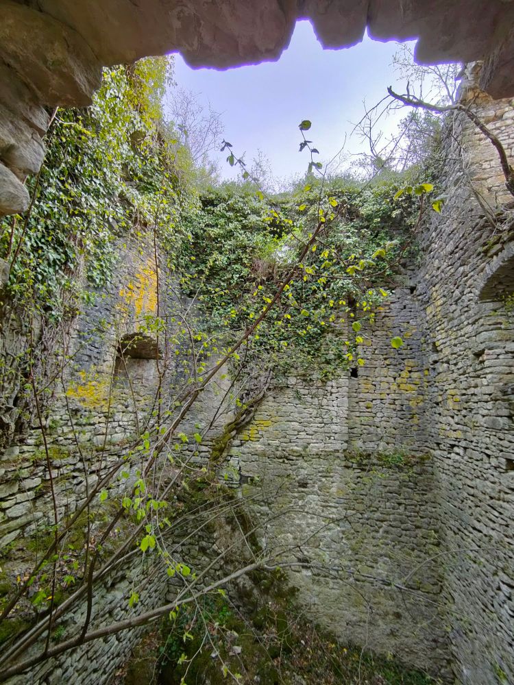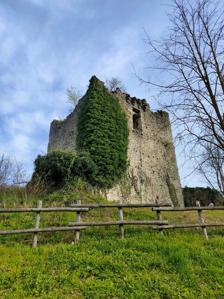 Ci spostiamo ora poco fuori dal borgo per andare a scoprire un piccolo castello, ci appare dopo una breve salita lungo un sentiero escursionistico in cima ad un piccolo colle. Il verde tutto attorno dona ulteriore bellezza a questo sito storico….